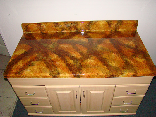 When stain is thoroughly dry apply two to three coats of our clear topcoat. This will make your countertop look like an