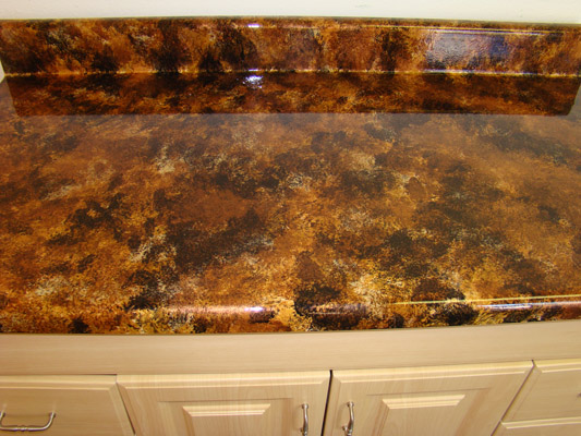 When stain is thoroughly dry apply two to three coats of our clear topcoat. This will make your countertop look like an